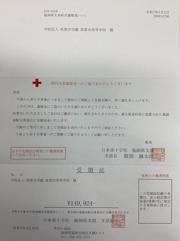 太宰府市役所内 日本赤十字を通じて 能登半島地震義援金として