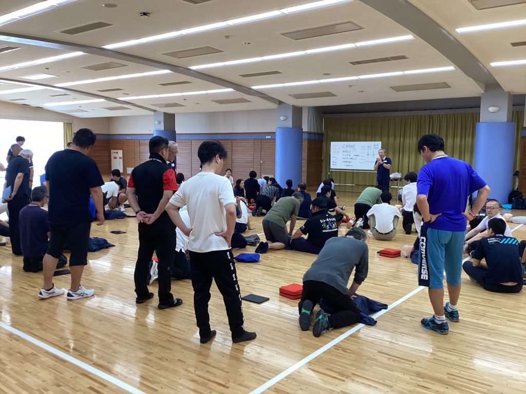 赤十字の指導員に方に来ていただき、実演をしていただきながら、大変わかりやすい救急講習となりました。