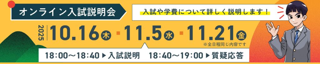 オンライン(YouTubeライブ配信) にて、簡単な学校紹介と入試説明を実施いたします。