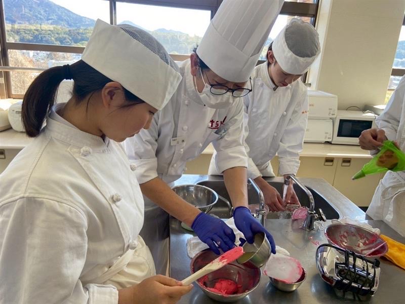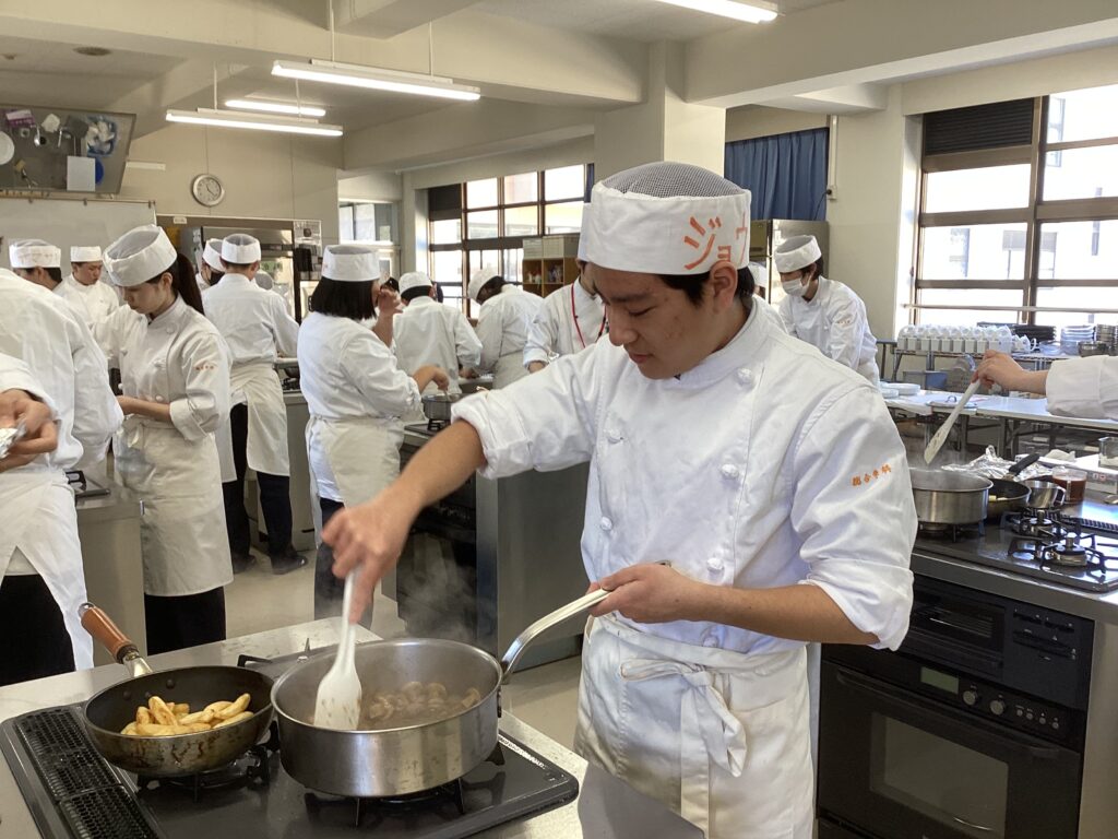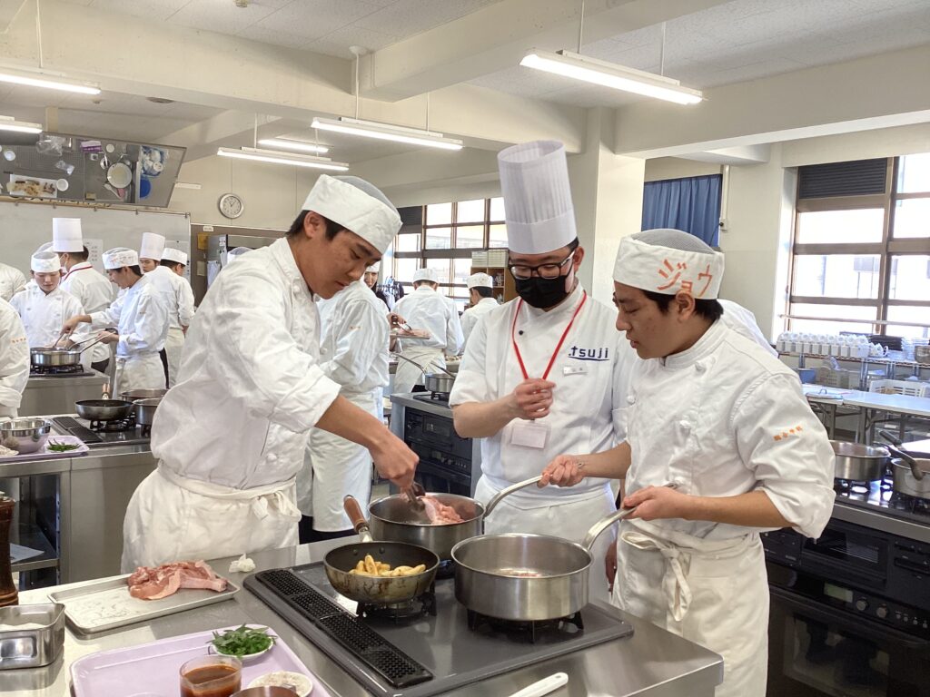 当日は本格的なフランス料理と色鮮やかなお菓子作りの授業が行われました。生徒たちは調理、製菓に分かれて受講しましたが、どちらの講座も大満足の内容でした。特に講師の先生方による圧倒的な技術力、多様な食材を用いての充実した実習に感動していました。料理業界に進む人材育成のために尽力いただいたことに深く感謝です。