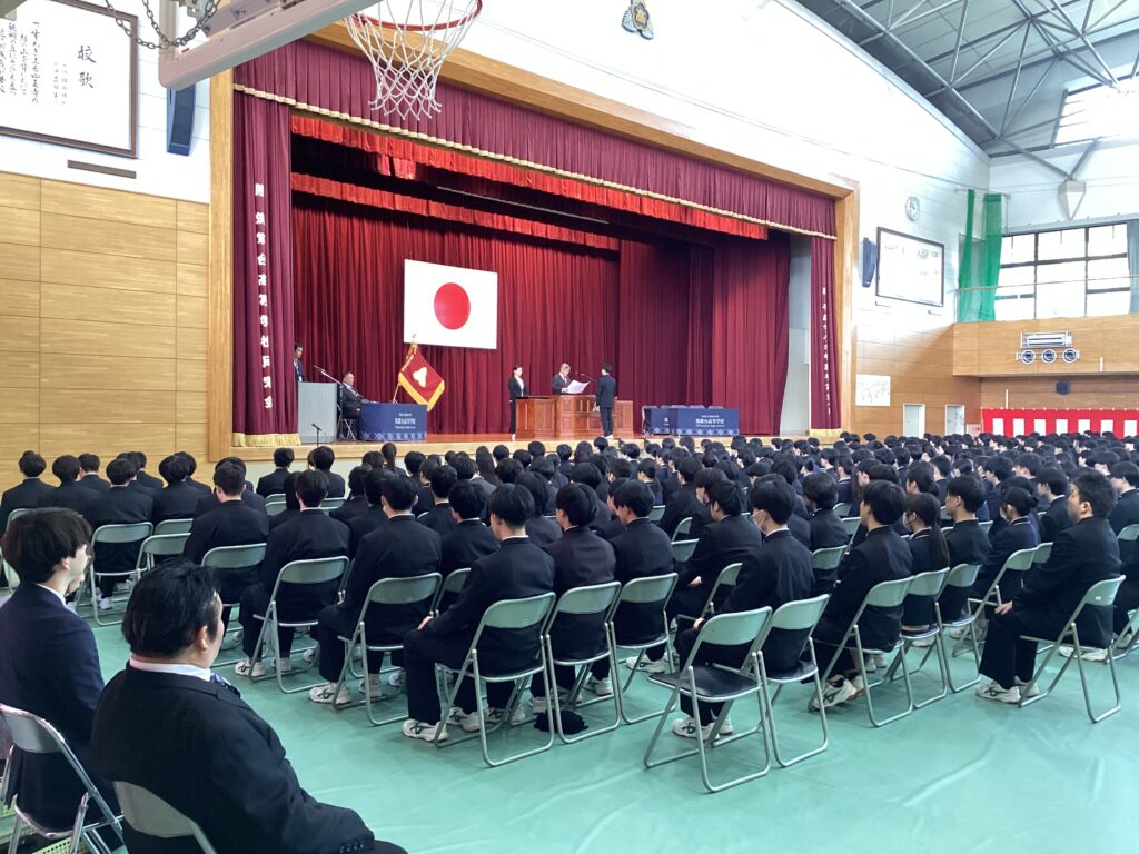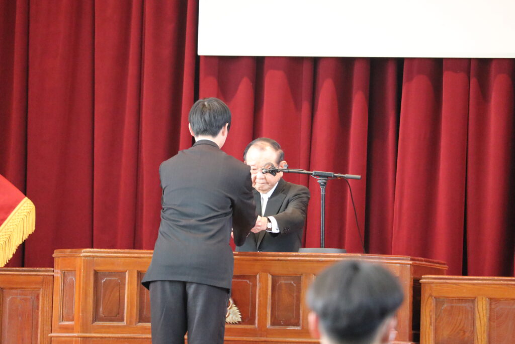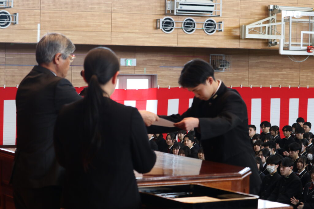 本日、表彰式が行われました。高校3年間にわたりさまざまな場面で活躍された先輩方、本当におめでとうございます。