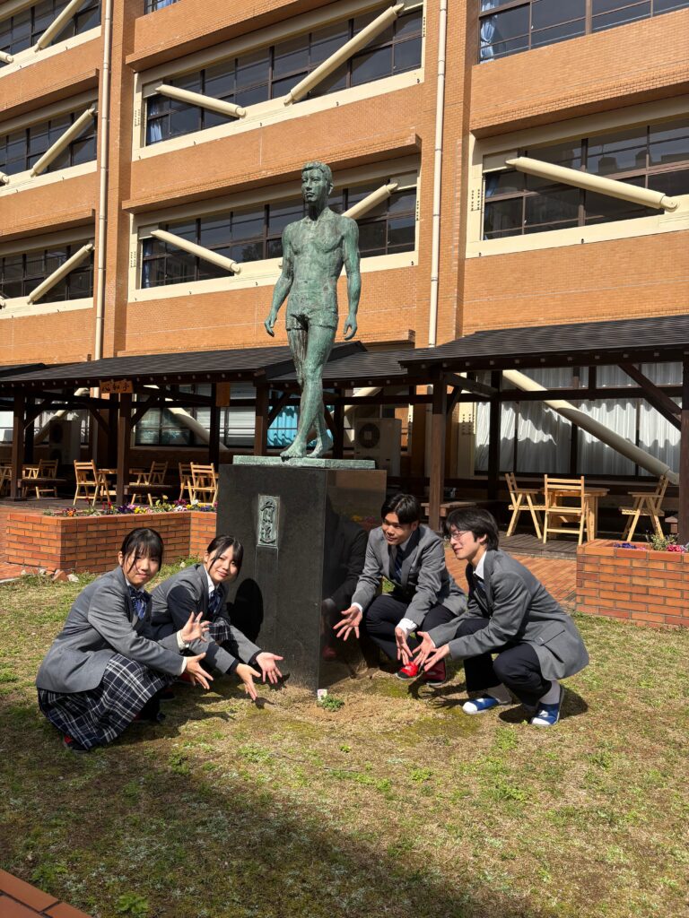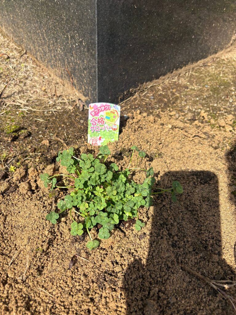 このたび記念として、生徒会の先輩より葉が5枚ある「合格クローバー」をいただきました。合格への願いを込めて、中庭ワンヘルスガーデンの銅像のそばに植えています。しっかりと根を張り、やがて大きく広がっていくことを願っています。